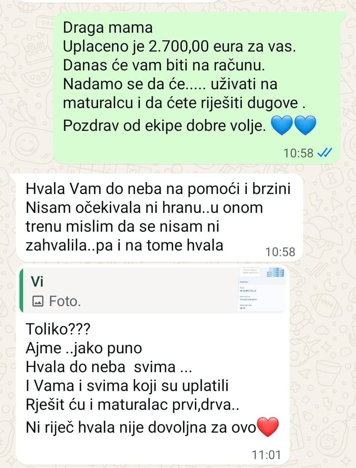 Ova donacija nije samo financijska pomoć – ona je dokaz da ljudi s velikim srcem postoje. Hvala vam što ste pokazali da prava snaga nije u mišićima, nego u ljudskosti, solidarnosti i spremnosti da se pomogne.