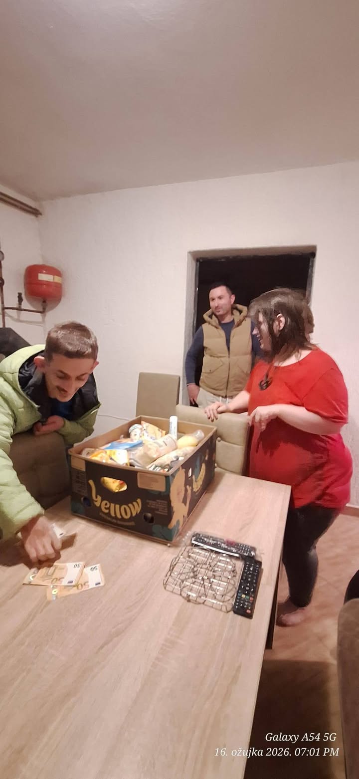 Postoji mogućnost da ostvari pravo na inkluzivni dodatak, a jedna divna prijateljica iz školskih dana spremna je ići s njom i pomoći joj kroz cijeli proces – naravno, ako ona pristane. To nam svima daje tračak nade 💙 I ovaj put smo im ostavili i malo novaca da si za Uskrs kupe ono što im je najpotrebnije, uz paket hrane koji će im barem malo olakšati svakodnevicu.