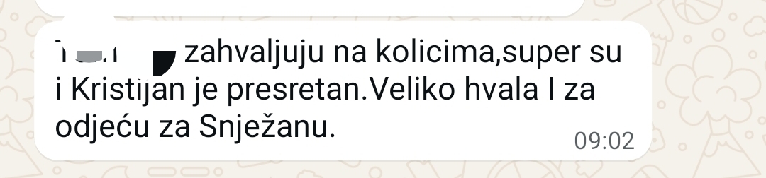 Pozdrav dobri ljudi Puno hvala na kolicima za Kristijana.
