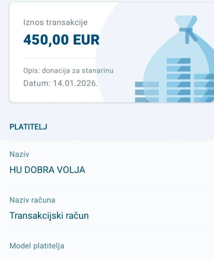 💌Prošle godine u 1.mjesecu jednoj smo mami i njezinom sinu otplatili kuću do kraja, a ove godine plaćene su joj ovrhe i kredit. Njih dvoje žive od njezine plaće koja je ispod 700 eura i dok plate kredit , ostane im ispod 400. Sad će napokon moći primati svoju cijelu plaću i biti će malo lakše. Za ovu svrhu uplaćeno je 1888,92 eura za zatvaranje kredita i 857,10 eura za ostatak ovrhe. Da izbjegnemo komentare "ljudi dižu bezveze kredite pa traže druge da im otplate..", ne, kredit nije bio tu bezveze nit je potrošen bezveze.