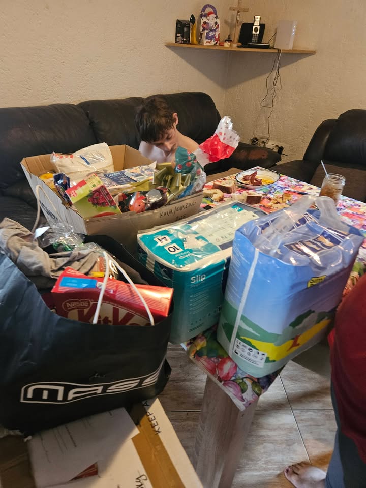 Posjetili smo jednu posebnu obitelj ❤️ Obitelj koja svakodnevno vodi tihe borbe, ali još uvijek ima snage za osmijeh. Imaju dvoje bolesne djece, a naš Nikola nas je dočekao s onom čistom, dječjom srećom koja dira ravno u srce. Seka je kao i svaki put cekala na prozoru. Njegova najveća radost? Otvaranje i pregledavanje paketa koje mu donosimo 📦😊