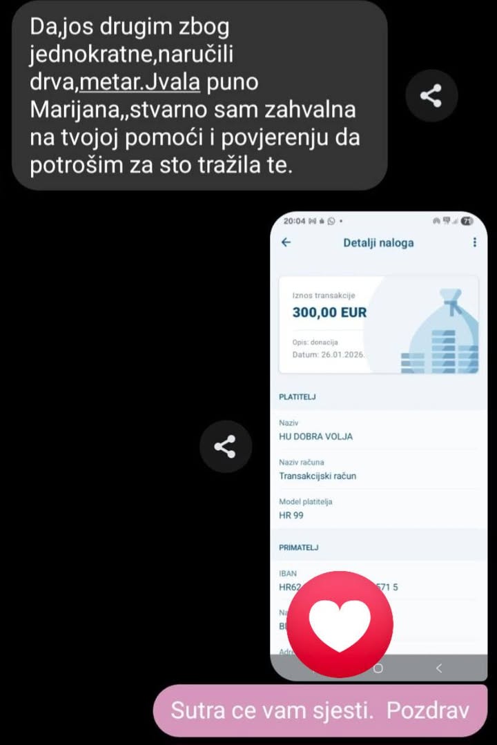 300,00 eura uplatili smo našoj Blaži za još koji metar drva ili što bude trebalo njoj i njezinoj mami , predivnoj miloj bakici ❤️
