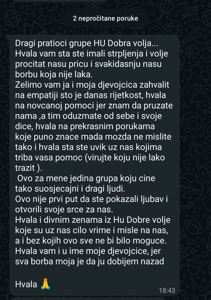 Hvala vam što ste još jednom pokazali da dobrota među ljudima i dalje postoji. Hvala vam što niste ostali ravnodušni. Mi ćemo, kao i uvijek, biti uz ovu obitelj i pratiti njihovu borbu. Od srca vam hvala u ime jedne hrabre mame. ❤️